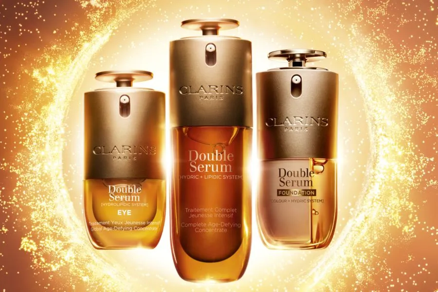 - Clarins’ Double Serum Foundation features a two-chamber bottle with 70% color cosmetics and 30% hydric system, tapping into the “skinification” trend.